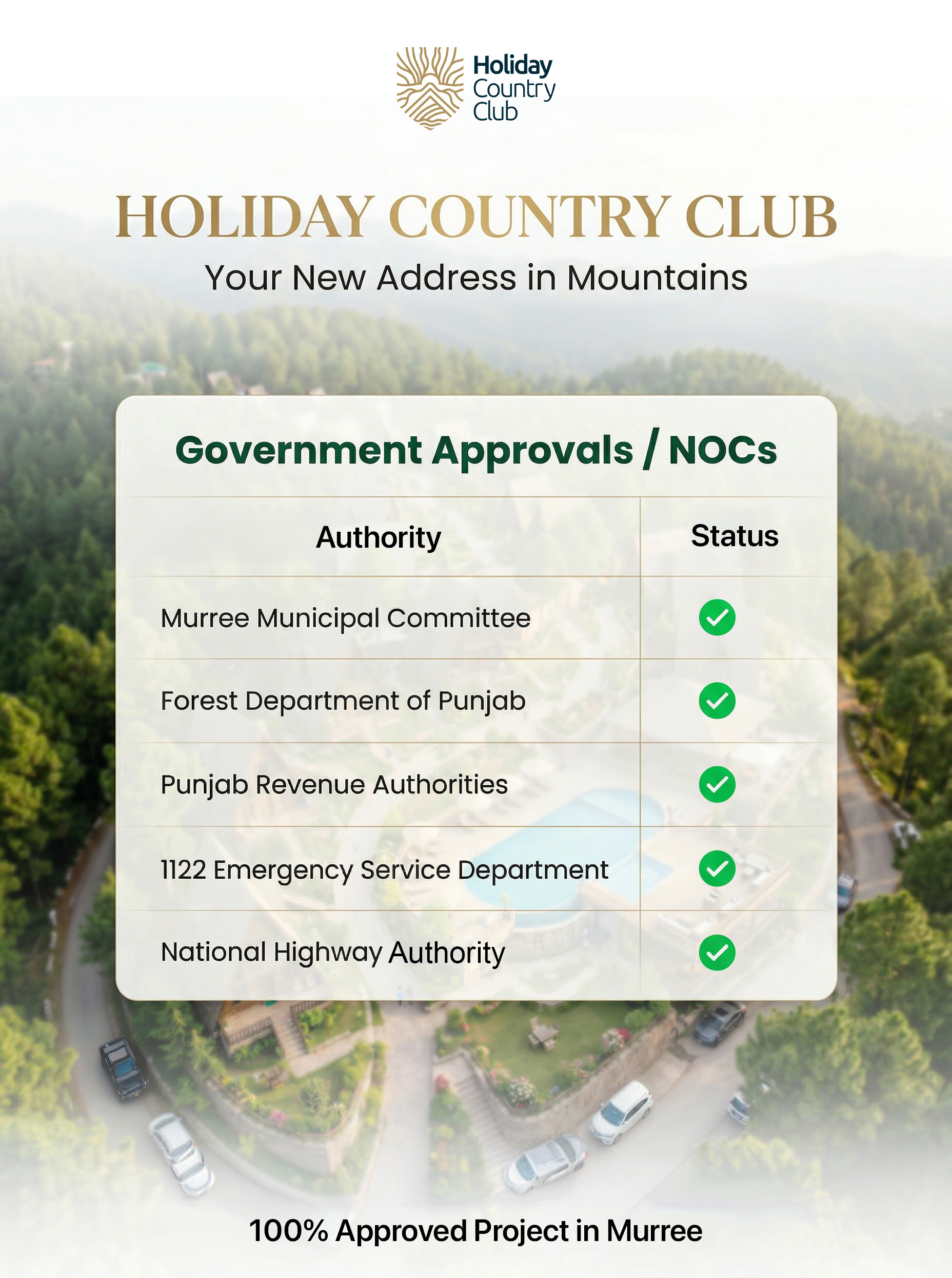 Holiday Country Club sprawls across 800 kanals of pristine terrain, offering a sanctuary of serenity and luxury. Within this expansive estate, nature's artistry unfolds with 3 natural water channels. Emboldening the scenery are 5 magnificent mountain ridges, each commanding awe-inspiring views of the surrounding vistas.Amidst this verdant expanse thrive over 5000 majestic pine trees, lending their fragrance and shade to every corner of our retreat.Additionally, the charm of the landscape is further enriched by the presence of over 4000 Diyar trees, standing tall as guardians of our idyllic haven.